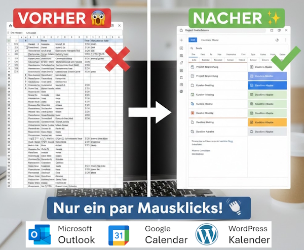 Wie viel Zeit verschwendest du damit, Termine mühsam aus Excel-Tabellen oder Word-Dokumenten händisch in deinen Kalender zu übertragen?